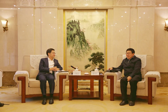 11月5日,集团公司党委书记、董事长廖家生在集团总部会见国泰海通证券党委副书记、总裁李俊杰一行,双方就开展务实合作进行深入交流。集团公司党委常委、总会计师朱庆锋参加会见。