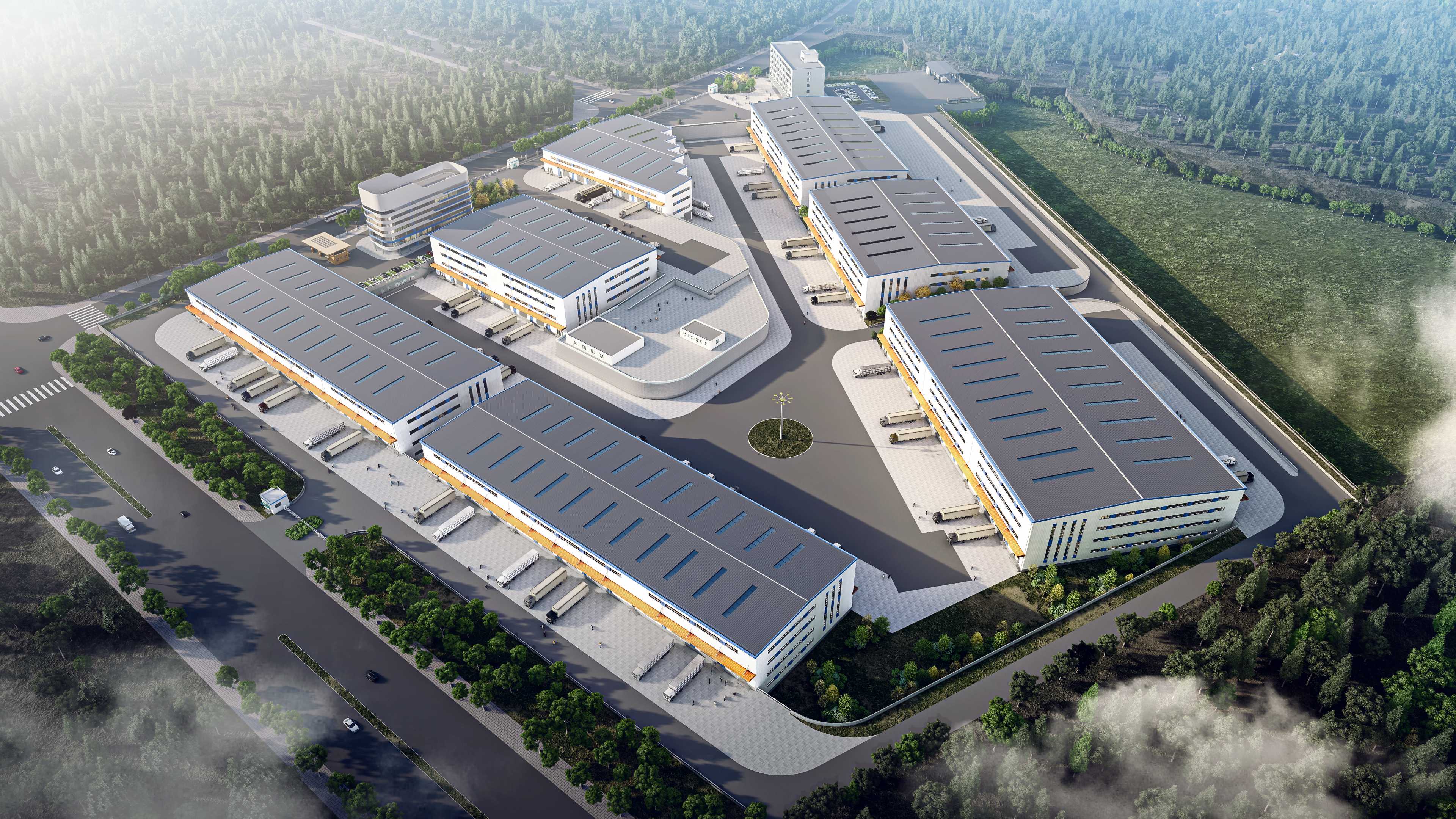 该项目占地约197亩,总建筑面积约11万平方米,建设供应链中心仓、城市仓配中心、供应链零担库、后勤服务楼及其配套设施。项目设计团队结合地形特点,提出了“双首层”的设计理念,实现了土地利用最大化。