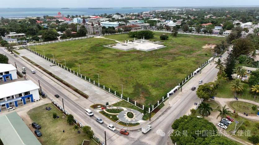 援汤加王陵项目位于汤加王国首都努库阿洛法市中心,是汤加首都的地标性建筑,具有重要的文化和宗教意义。项目于2024年2月开工,2025年8月完成竣工验收,建设内容包括王陵辅助用房、墓室墓道、围挡围墙、停车场及人行道。项目四个街角花园融入了汤加文化元素和精神文化地标,既可以保护美化汤加王室遗产,又可以改善区域旅游基础设施,为当地百姓提供休闲活动场所。