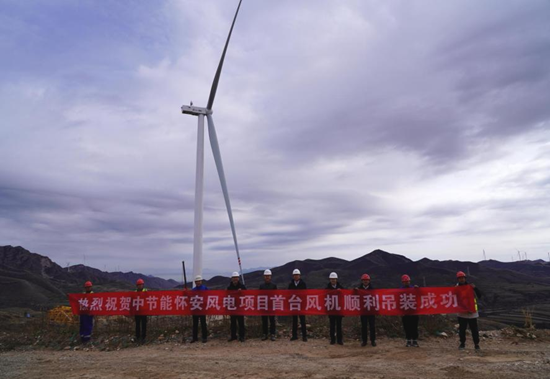 10月30日,华北区域公司中节能怀安100兆瓦风电项目首台机组吊装成功。