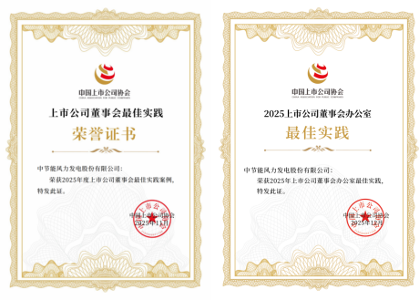 近日,节能风电获得中国上市公司协会“2025年董事会最佳实践案例”“2025年董事会办公室最佳实践案例”奖项,充分彰显了权威机构对节能风电公司治理和董事会运作质量的高度肯定。此次评选活动由中国上市公司协会主办,旨在挖掘并推广上市公司在董事会治理和董事会办公室履职方面的先进经验,推动上市公司治理体系现代化,引导企业践行高质量发展理念。